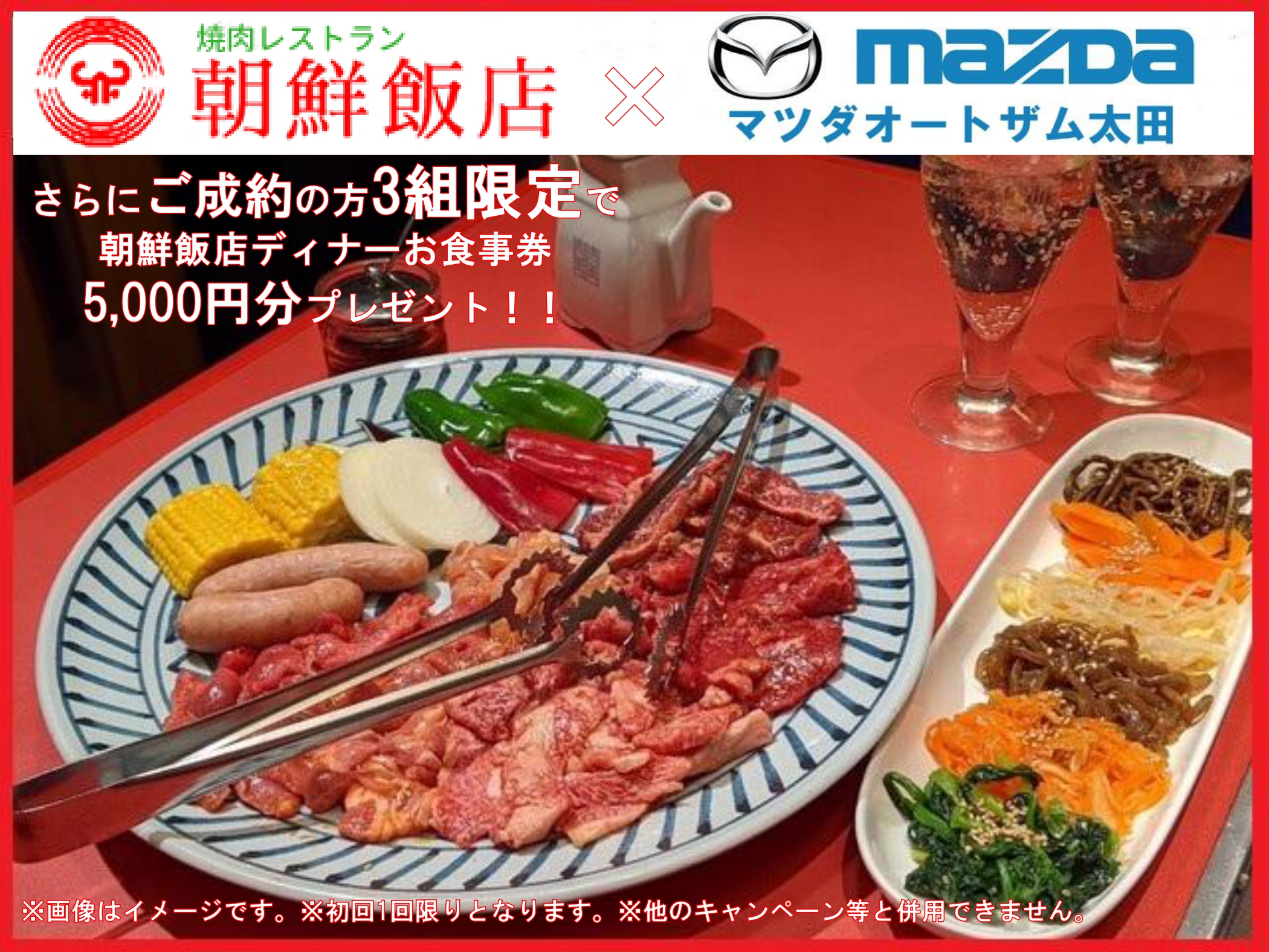 更にはお車を成約頂いたお客様に、焼肉店でご利用できる5000円分の食事券をプレゼントさせて頂きます!!